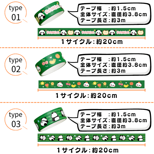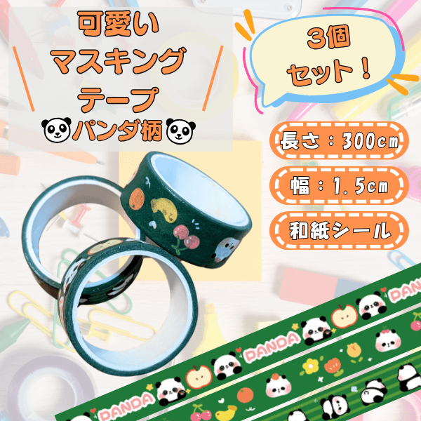 可愛いパンダ柄のマスキングテープ 3個セット
